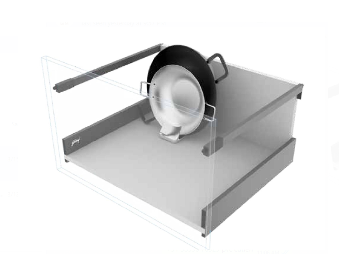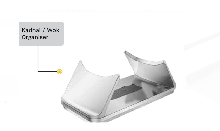 . The Kadhai / Wok Organizer assists in vertical placement of the Kadhais. A unique and innovative solution.